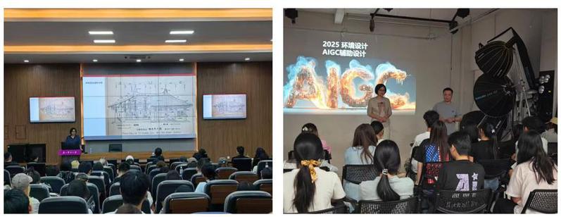 多元融合,构建思政教学新生态。该课程在教学形式上大胆创新,邀请多元学科背景教师交叉授课,将专业授课、人工智能应用、社会实践以及美育讲座有机融合,构建起全方位、多层次的课程思政教学新生态。专业授课时,教师化身“思想工匠”,深入挖掘课程中的思政元素,将专业知识与价值观引导巧妙结合,为学生打造坚实的思想基石。同时,引入人工智能技术赋能设计教学,让学生们能够紧跟时代步伐,及时掌握前沿的设计理念和技术方法,提升创新能与竞争力。