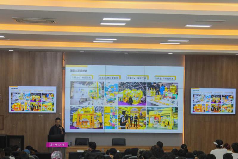 分享会上,梁益点明优秀设计师须具备“观察、分析、推理、验证”四大核心能力,他结合汪柴主IP打造、广州酒家品牌升级、青岛啤酒包装创新等经典项目案例,讲述如何从市场和用户角度出发,精准捕捉需求、规划发展路径,让学生直观感受设计与市场、用户的紧密联系。