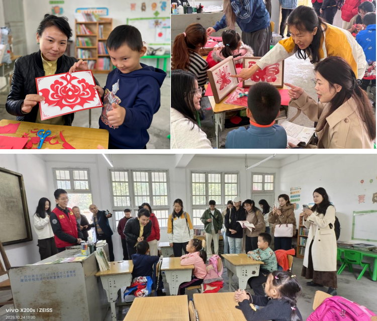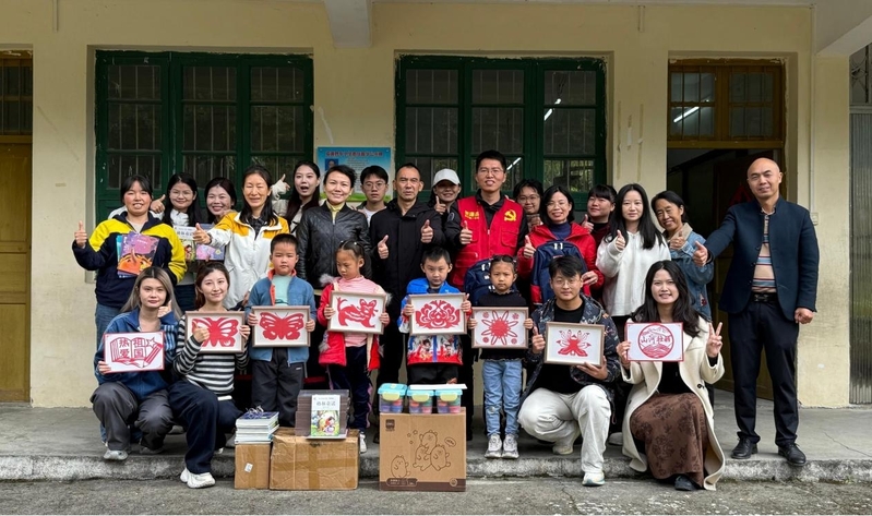 活动当天,师生党员们首先为猴背村的孩子们带来了一堂别开生面的美育实践课。通过讲解剪纸历史、展示剪纸技艺、指导学生动手剪纸,让学生感受非遗文化的魅力,增强对传统文化的认同感与传承意识。课堂上,孩子们兴致盎然,在欢声笑语中不仅感受到了艺术的魅力,更增强了对本民族文化的认同感与自豪感。