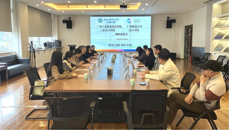 11月6日,广西工业职业技术学院工业设计学院任民院长一行前来我院考察交流。我院副院长谢青教授、各系系主任以及相关负责人参与座谈交流。