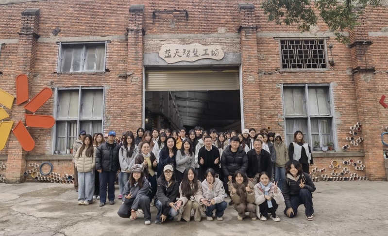 工业设计师生在桂林蓝天智慧工坊参观交流合影