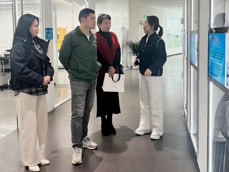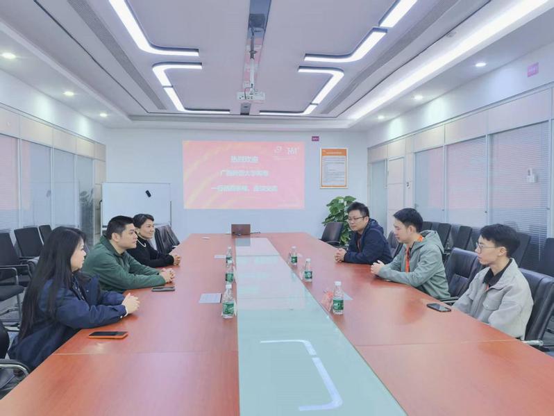 在361°产业园,人力部总监顾新、校企合作负责人刘松、361°柳州产业园负责人乐子刚,陪同参观自动化吊挂系统车间、智能物流园区及5G智慧工厂数字化场景,直观感受科技赋能生产的强大力量。交流环节,双方围绕运动服饰设计创新方向、数字化设计工具的高效应用以及契合市场需求的人才培养模式等关键议题展开,探寻合作共赢新路径。